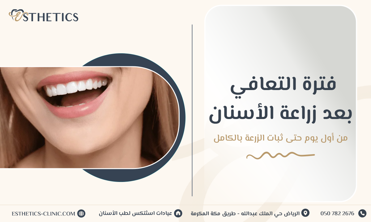 كما يساهم التعافي السليم في استعادة الوظائف الطبيعية للفم منها المضغ والتحدث بثقة، وذلك مع الحفاظ على المظهر الجمالي للأسنان والابتسامة، حيث تعتبر هذه المرحلة حجر الأساس لنجاح الزراعة واستمراريتها.