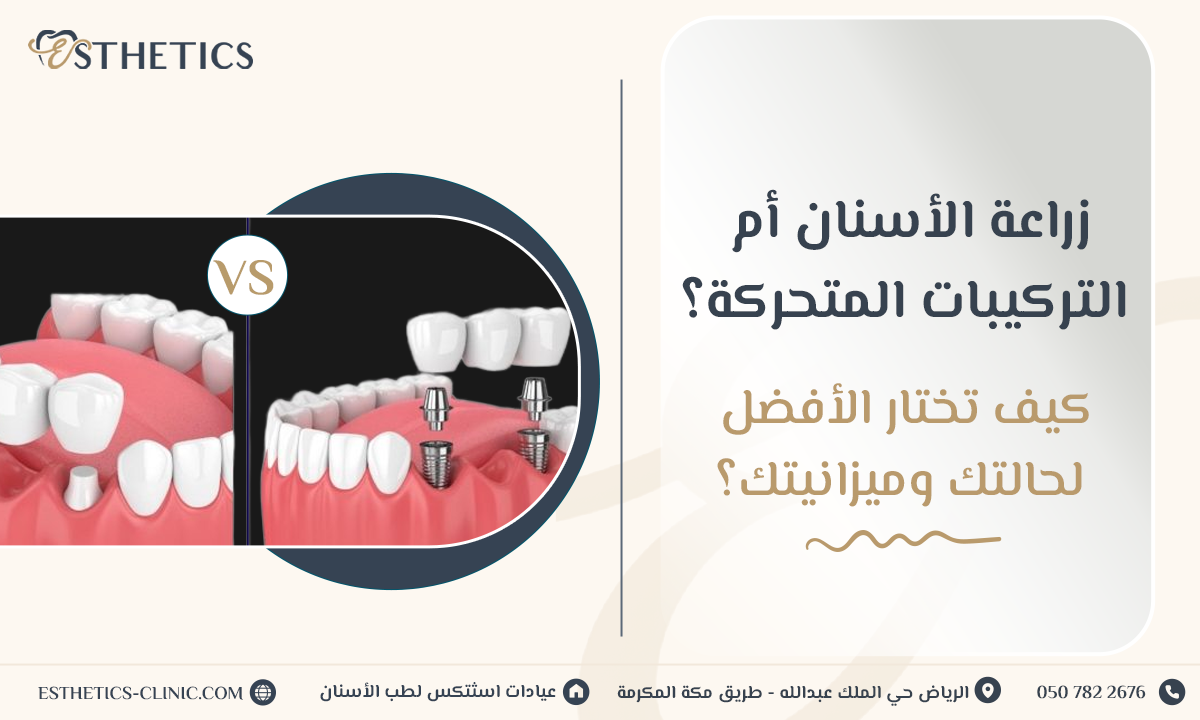 زراعة الأسنان توفر حل دائم وطبيعي، ولكن التركيبات المتحركة أكثر مرونة ولكنها أقل استقرار وطول عمر.